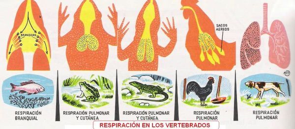 En los animales acuáticos, el intercambio gaseoso se hace en el agua. Los órganos capaces de coger el oxígeno disuelto en el agua se llaman branquias o agallas. Los animales terrestres pueden tomar los gases, o bien por medio de cavidades cerradas llamadas pulmones, o bien por medio de canales que se van ramificando por interior del animal y se denominan tráqueas.