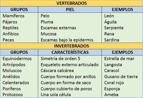 Aunque en la Tierra haya más de un millón de especies diferentes de animales, todas ellas se pueden reunir en varios grupos. Los principales grupos de animales son los que aparecen en la siguiente imagen: